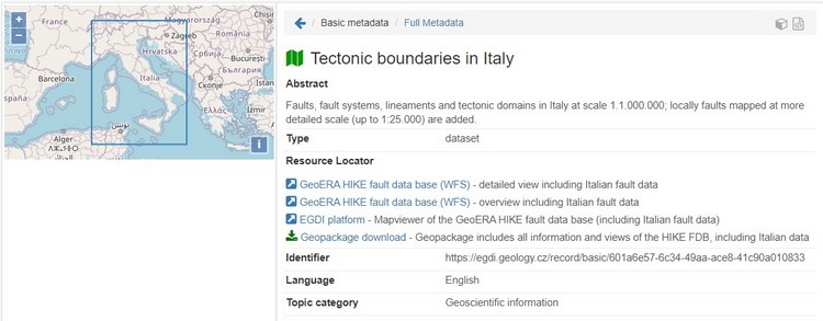 L'HIKE European Fault Database è accessibile attraverso il MapViewer. Cliccando su una linea di faglia si accede alla tabella degli attributi e ai link dei vocabolari. L'intero Database può essere inoltre scaricato in formato GeoPackage.